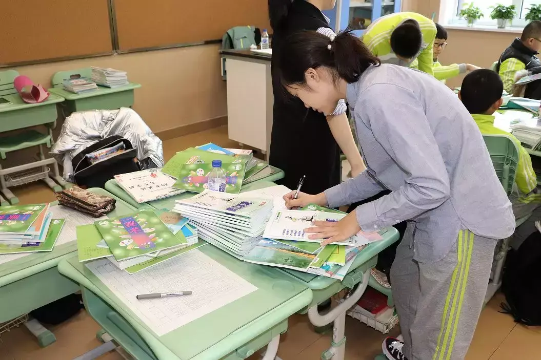 姜老师采取面批的形式检查孩子们的作业,按照孩子们完成作业的认真程度,以及假期电子作业的上传情况,为孩子们的假期作业评定等级。