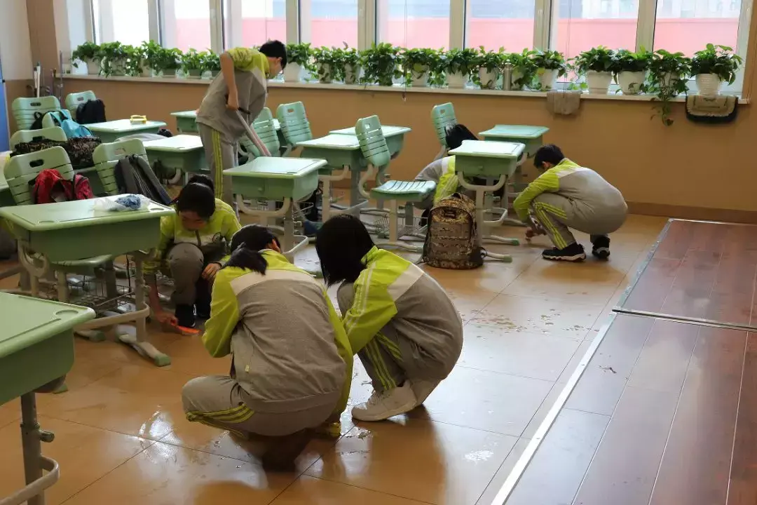 检查完作业,孩子们认真滴清扫了一下他们的小家,干干净净滴迎接新学期。