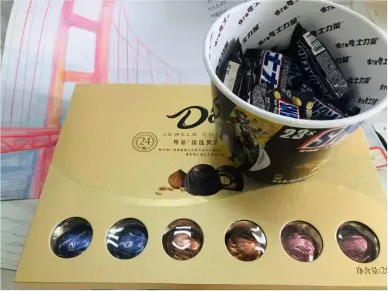 班主任老师为孩子们准备的新年糖果,女孩子的德芙巧克力,男孩子的士力架。 新的一年女孩子们都开开心心的,男孩子越来越有担当,希望孩子们这一年收获满满。