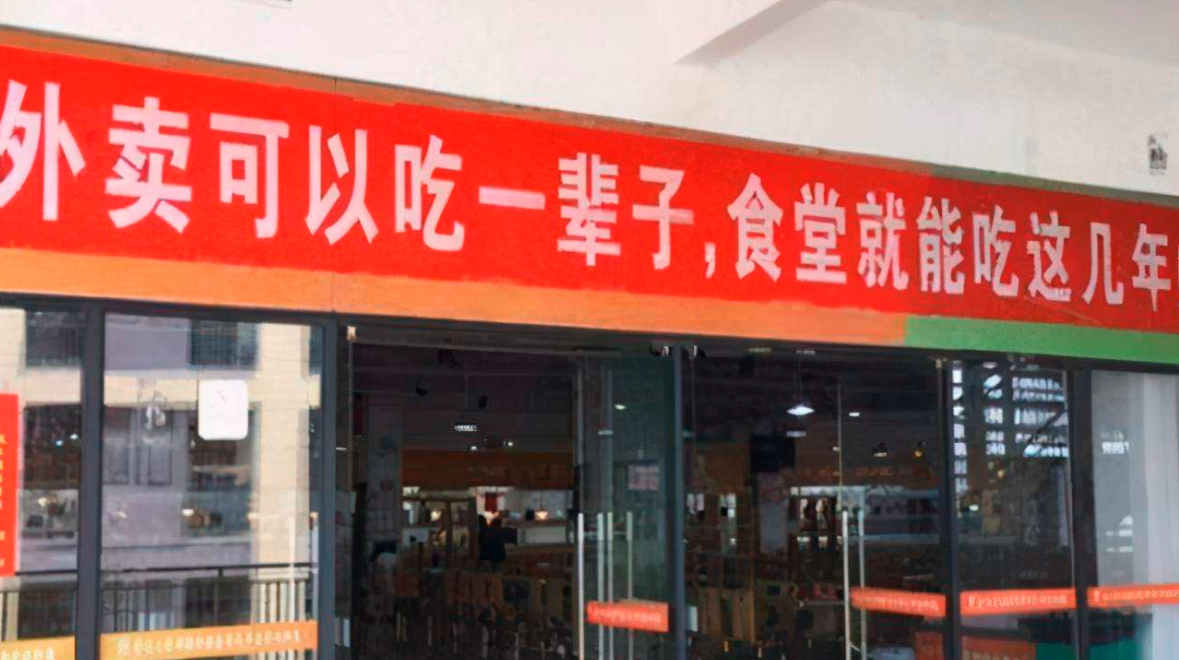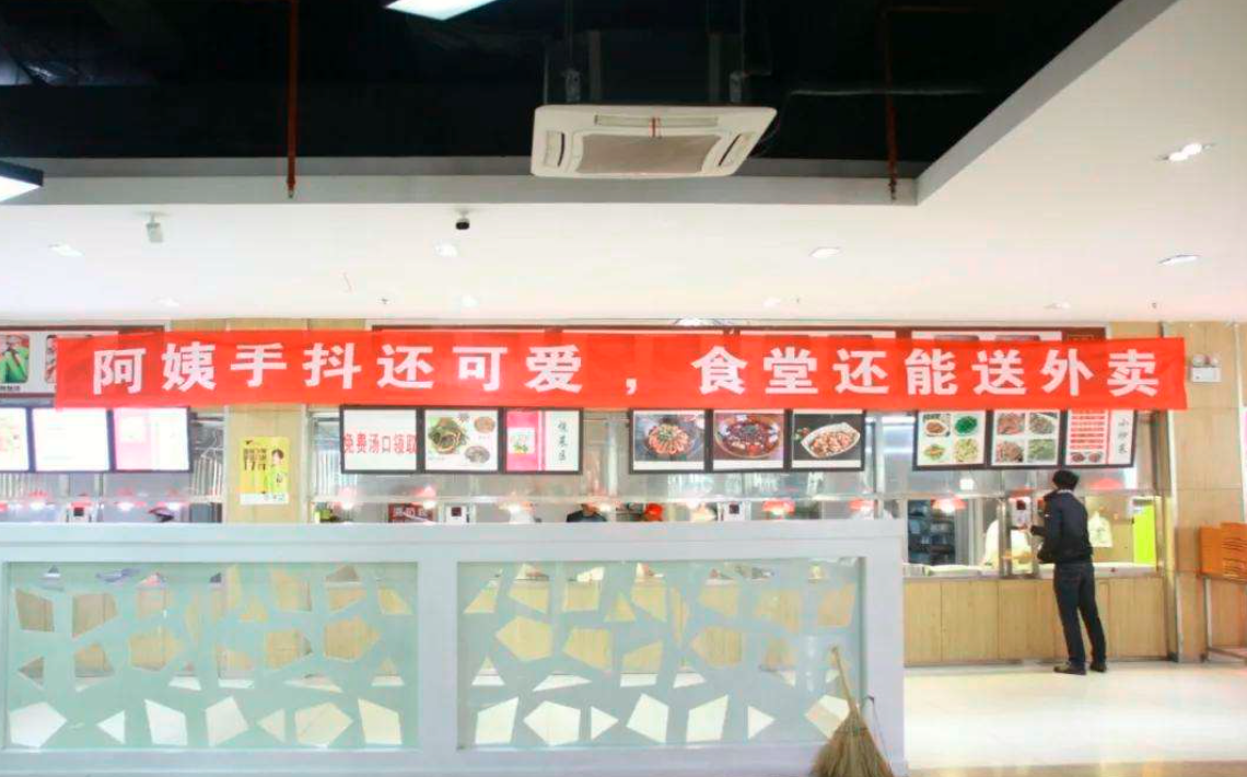 甚至会有学生在大学期间点外卖吃,而食堂阿姨为了可以吸引学生们来吃饭,真的是“费尽心思”,竟在大学食堂当中拉起来“标语”。