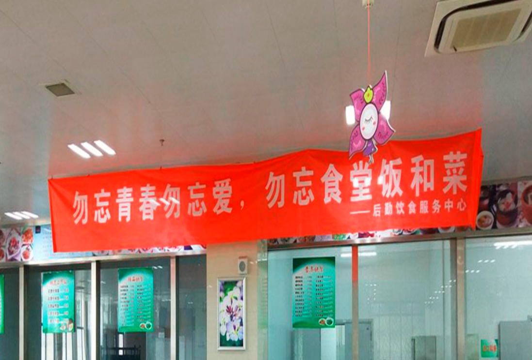 这所大学食堂的门口贴着“外卖可以吃一辈子,食堂就能吃这几年”,不得不说,阿姨们还挺会制造氛围,而且说得也比较有道理,相信多数学生在看到食堂阿姨的标语时,都会积极地去大学食堂吃饭。