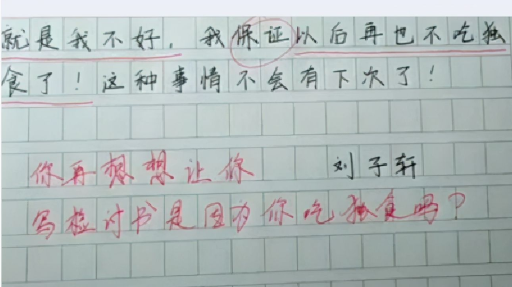 为了让学生们长记性,很多小学老师会要求犯错误的孩子写下“检讨书”,更深刻地交代自己的行为。不过,有些顽皮的同学,却把检讨书写出了“新高度”。