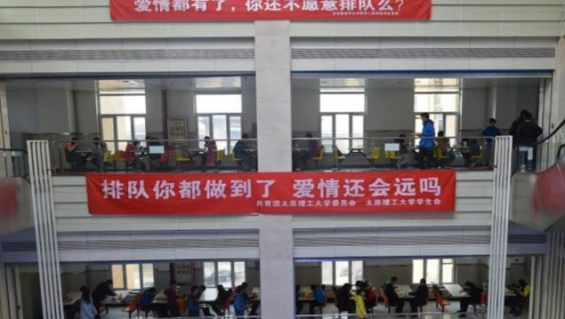 这个标语这个时候就非常受用了,爱情都有了,你还不愿意排队吗?如果你没有爱情,那么排队你都做到了,爱情还会远吗?这个标语可以说是两头都占了,证明食堂真的是还挺厉害的。