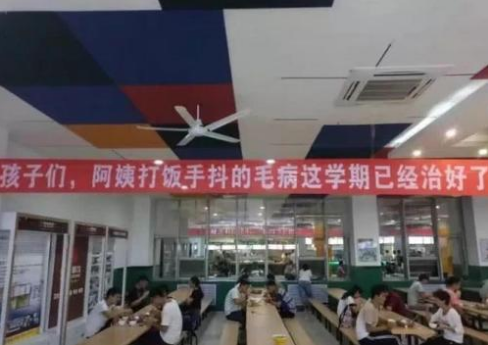 现在为了让学生们都来学校的食堂吃饭,食堂的标语上清清楚楚地写着,孩子们,打饭阿姨手抖的毛病已经治好了,这句话趣味性还是很强的,相信些学生们看到之后也很感兴趣,说不定就真的去食堂吃饭了。