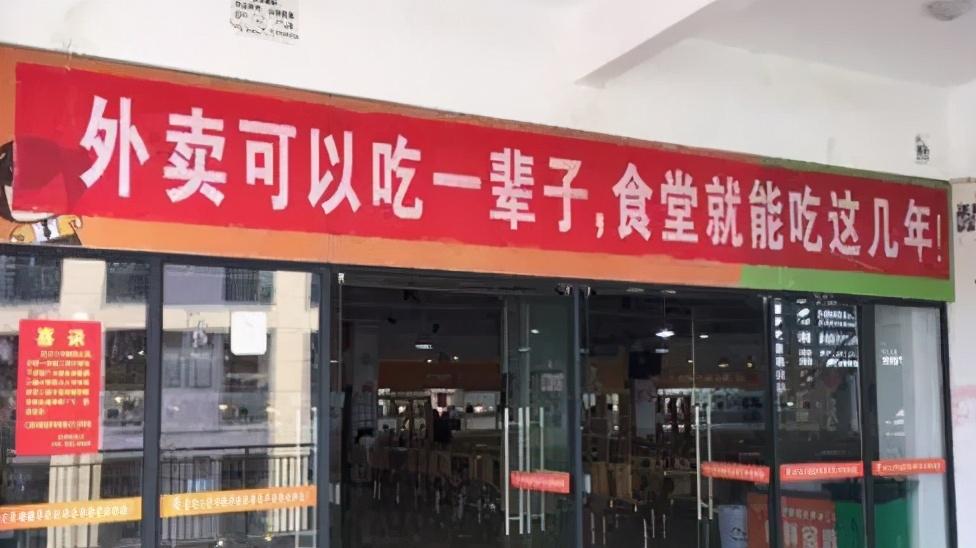 所以有部分学生,在没有什么课的时候,会选择到学校外面吃,这样大学食堂的“危机”就来了,为了吸引更多的学生到食堂里面吃饭,学校里的各大食堂,更是直接拉了很多条幅,贴了很多的标语,学生看完之后也是哭笑不得。
