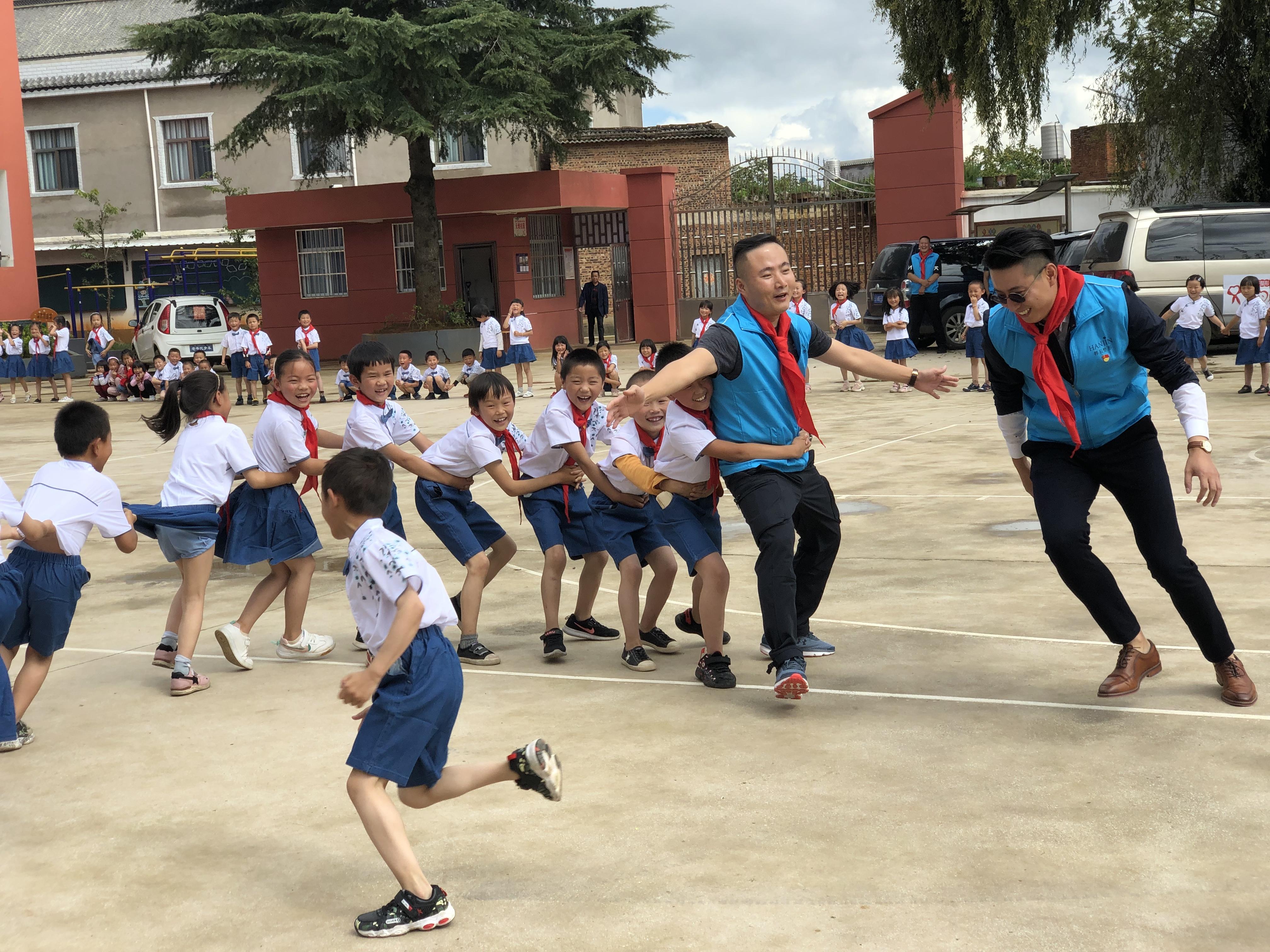 仪式结束后,志愿者们组织大家玩起了游戏。孩子们兴致高昂地和志愿者们进行着游戏互动,操场上充满了孩子们愉快的笑声。40分钟后,孩子们才依依不舍地结束了游戏环节。游戏结束后,志愿者们还给孩子们送上了文具盒和笔记本,孩子们小心翼翼地将拿到的文具收了起来。