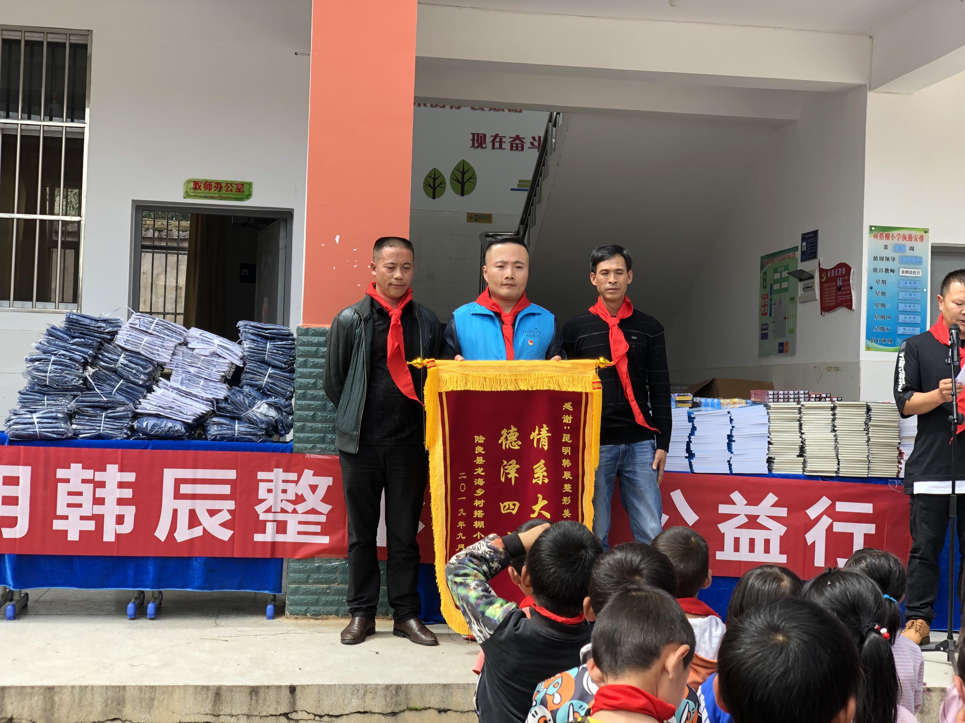 9月11日上午,被乌云笼罩的昆明还在淅淅沥沥地下着雨,昆明韩辰医疗美容医院执行董事卓金海带领8名志愿者已经踏上前往曲靖市陆良县龙海乡树搭棚小学的路途,载着校服、文具、图书、体育用品及满满的爱,风雨无阻为贫困山区小学捐赠爱心,关爱留守儿童。