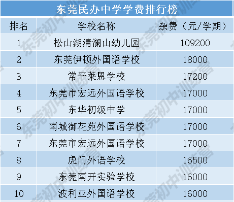 站长还搜集了东莞其他“天价”学校排行榜(包括幼儿园、小学和中学),看看东莞还有哪些“贵价”学校吧~
