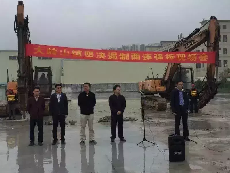 4月2日:市城管局、大岭山镇政府联合执法,依法强制拆除两栋位于大岭山镇大片美村长岭街的违法建筑,对两名涉嫌参与违法建筑的投资者进行处理。