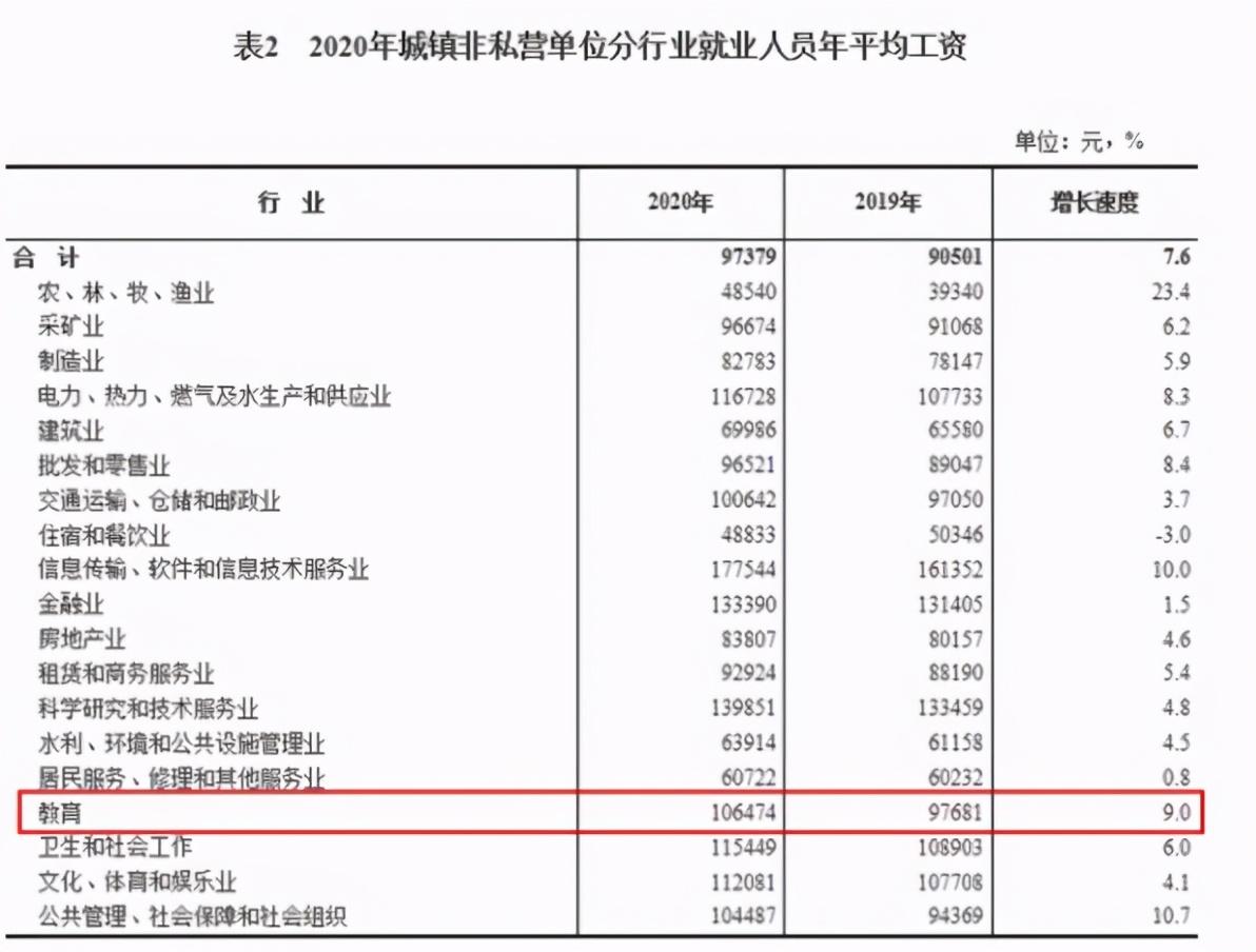 近日,国家统计局对2020年各行业工资作了详细统计,其中备受老师们关注的教育行业相对有所增长,在众多领域中工资增长速度排在前五,这对教师们来说无疑是一个好消息。