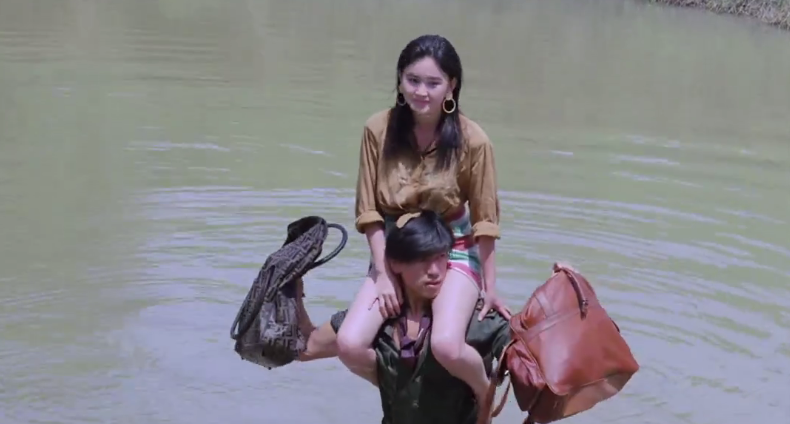 为了救阿美,阿威偷袭、打昏了首领,二人抢了一辆吉普车,夺路而逃。可是,在摆脱追赶的过程中,车子失控冲入河中。为了躲避士兵们的搜捕,阿美、阿威也只好藏在河中。