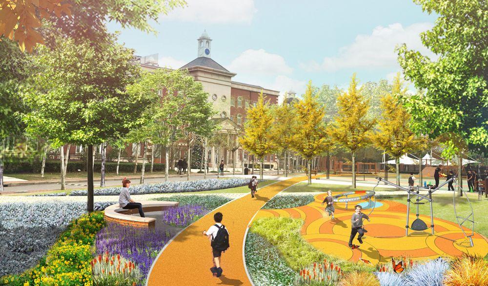 AECOM户外景观设计负责人Lee Parks表示,“游乐场的吸引力不仅仅体现在多姿多彩的设备上,更需要不断探索研究人性化的设计理念。我们更期待学生的空间意识、身体素质、认知能力和沟通技能都可以得到发展。孩子们在安全的环境下进行探索,并获得适当的刺激与挑战。”