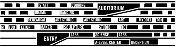 在整座教学楼最公共的一层,设计师设计了若干特殊的空间——怡人的学院景观、慢跑道、入口大阶梯与“海星”形的图书馆兼 A-LEVEL 学习中心。