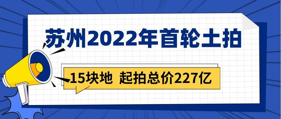 今日,苏州政府正式公布苏地网挂[2022]3号公告,苏州2022年第一次集中挂地信息正式来袭。本次共挂出15宗地块,起拍总价共计227亿。