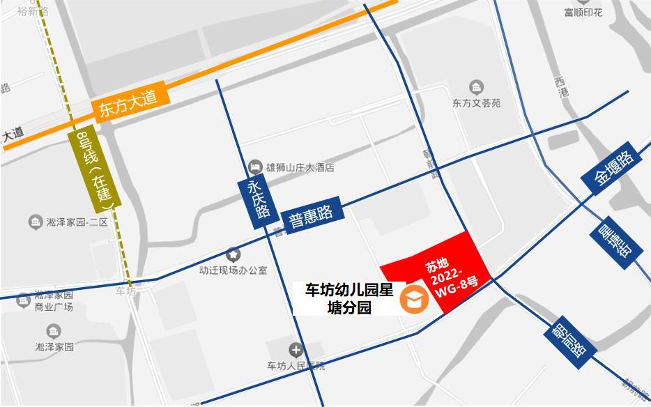 车坊此次出让的地块的东侧是东方文荟苑一区,西侧有星湖幼儿园、车坊人民医院,北侧为苏州工业园区朝前路实验学校(小学部)。
