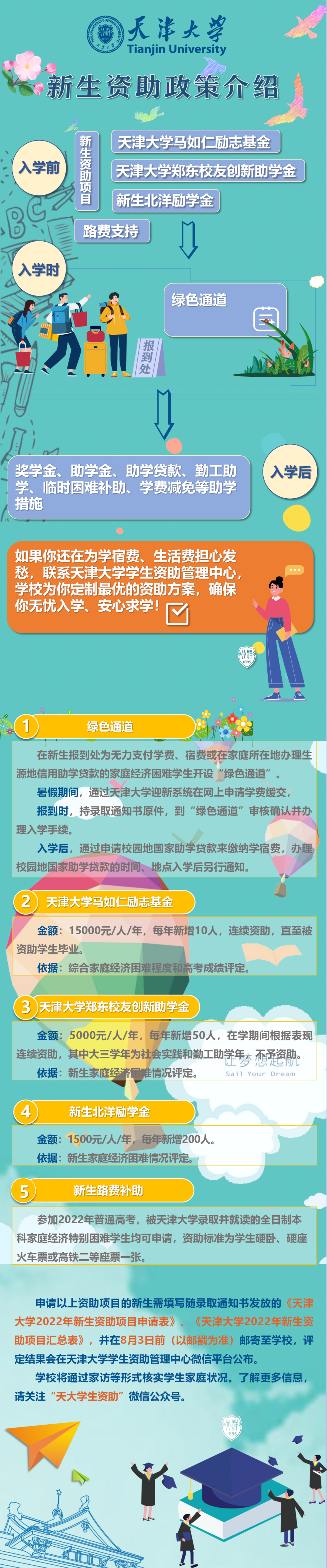 为进一步加强对家庭经济困难新生的资助,完善“从家门到校门”的无缝对接资助体系,帮助家庭经济特别困难的新生顺利来校报到,天津大学学生资助管理中心决定为2022级家庭经济特别困难的本科生提供路费补助。