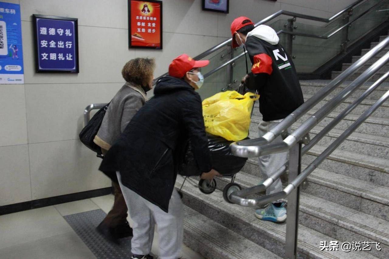 武汉市仪表电子学校的同学们分成几组,分别在自动售票机、安检口、进出站口值守,帮助乘客使用购票机购票和出入闸机,引导乘客按秩序乘车,对线路进行指引。看到老人和孕妇,青年志愿者们主动上前帮助提重物。