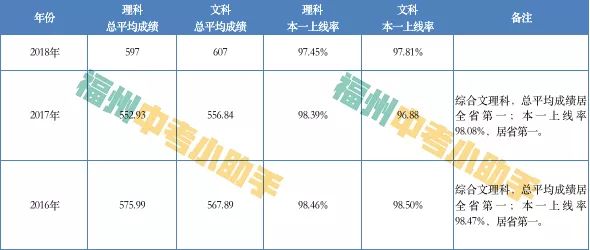 2017年:文科最高610分,理科最高610分,重点班平均分520分,全年段本一上线率65%。2016年:本科上线率为97%,本一上线率为68%,其中理科实验班本一上线率达96.6%,文科实验班本一上线率达92%。