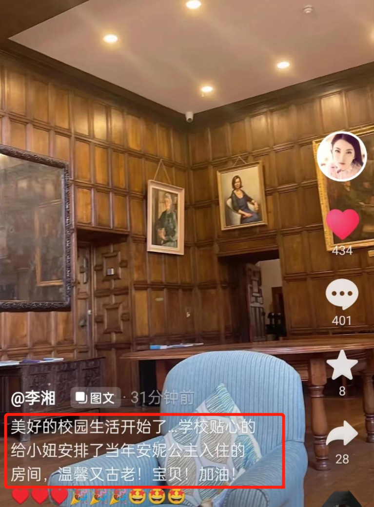 最近,李湘晒出成功瘦身的女儿就读英国博奈顿女校的照片。