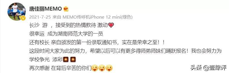 唐佳丽于2021年入学湖南师范大学体育学院。“今年9月,我们湖南师范大学见哦。”这是身穿国家队队服的唐佳丽在入校前对高三学子们发出的邀请。