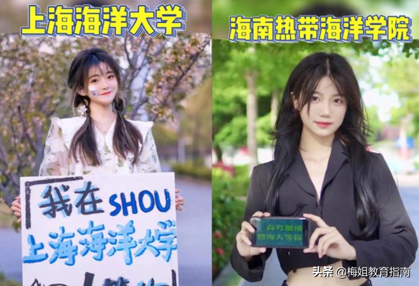 上海海洋大学和海南热带海洋学院的学姐举牌,更像是邻家小妹一样,清新,靓丽,妥妥的氧气美女,这样的宣传方式不仅成本低,口碑也不错,而且在网络时代,传播非常快,学校的知名度一时间上升。
