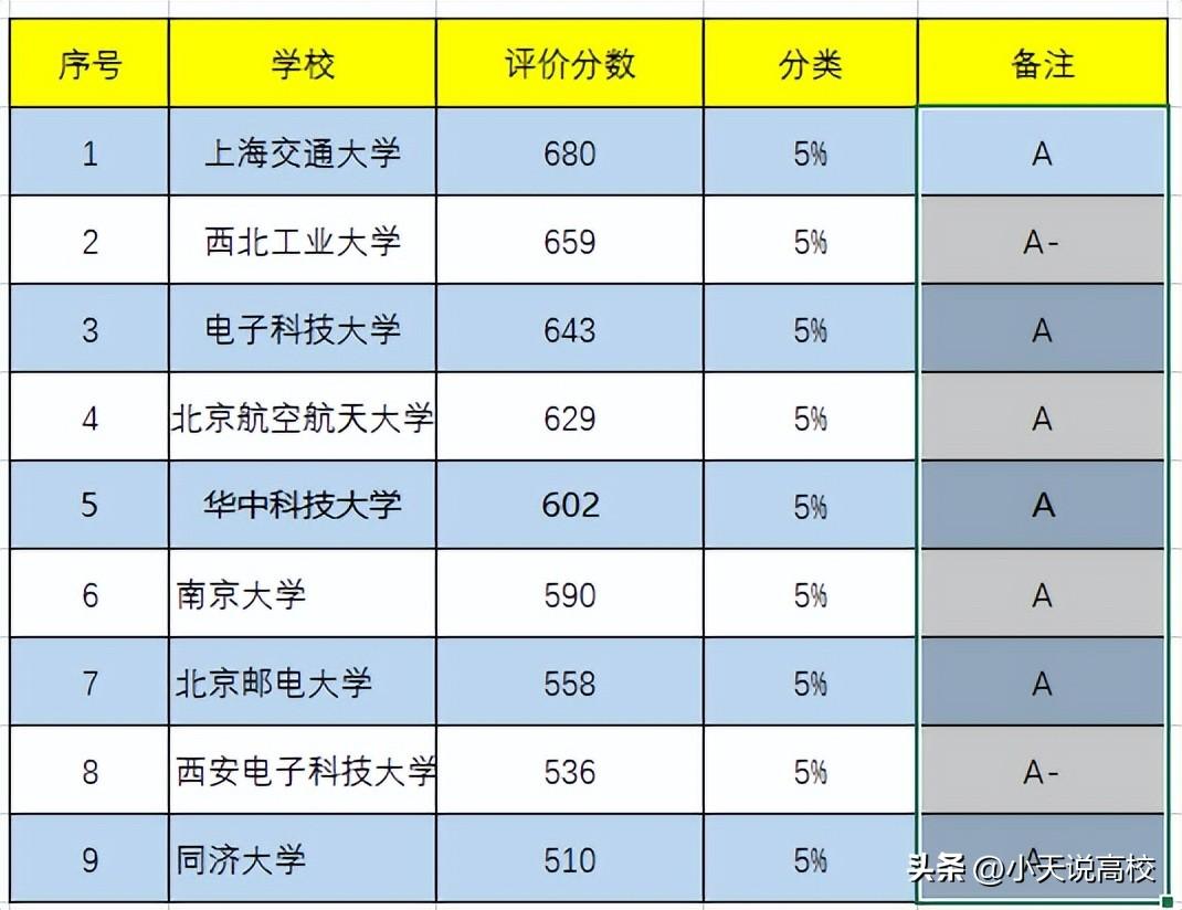 第四轮学科评估计算机A类只给了7个名额,软科版多了西电、同济、西工大,第四轮学科评估这三所学校是A-