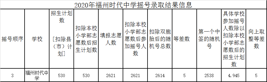 时代中学2020年面向福州市区各小学优秀毕业生招生,包括学籍在福州市区但户口不在福州市区的留城生和户籍已在福州市区目前仍在外地学习的回榕生。上图是时代中学今年招生人数及摇号录取结果,数据截取自福州教育局网站。在民办校100%摇号新政的加持下,时代中学今年的报名人数又有了新突破,2621位学生竞争530个学位,平时运气不好的人还真的闻风丧胆了。