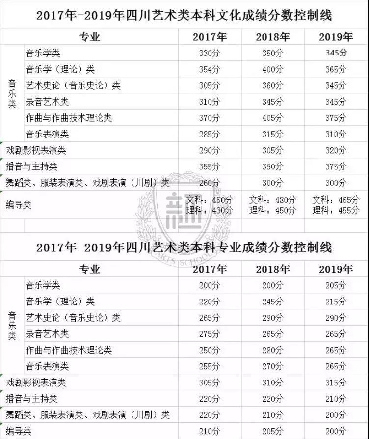 (2017年-2019年艺术类文化成绩专业成绩分数线对比)