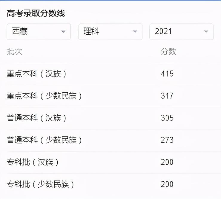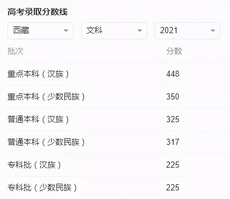 西藏理科重点本科(汉族)录取分数线是415,文科重点本科(汉族)为录取分数线是448。