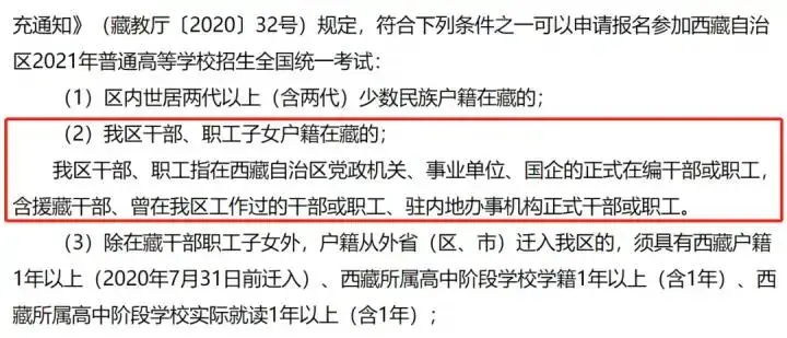 1. 户籍必须已经落户西藏。(学籍未在考量范围内)