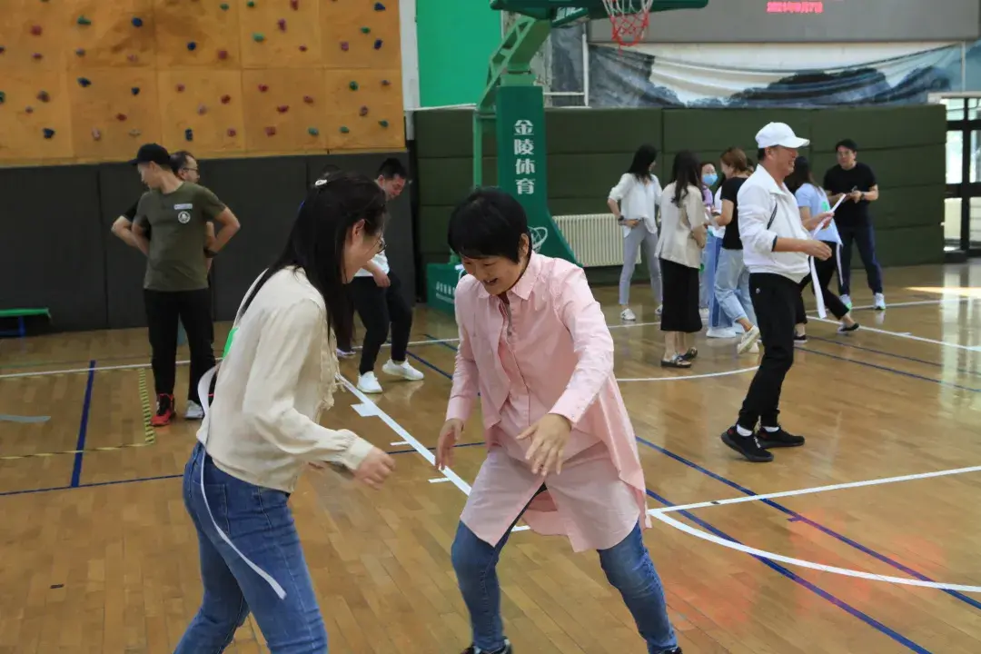 接着是“小西瓜大西瓜”的项目,看似简单锻炼反应速度的小游戏,却让老师们都体会到了面对突然指令时,冷静沉着才是致胜之道。随后大家分成两组进行了撕尾巴、锦上添花等项目的运动,一个个看似简单的小游戏,背后或者体现着面对困难团结才能战胜一切,或者体现着在大局面前要能够有牺牲个人利益的勇气等等,活动中不时能够听到老师们的感叹“浑身的筋骨都舒展开了,下午可以更好的投入工作了!”“咱俩果然是好搭档,工作游戏都是一样!”“小游戏大内涵啊!”“希望以后有更多这样的活动,更好的心境才有更好的前进动力!”‘