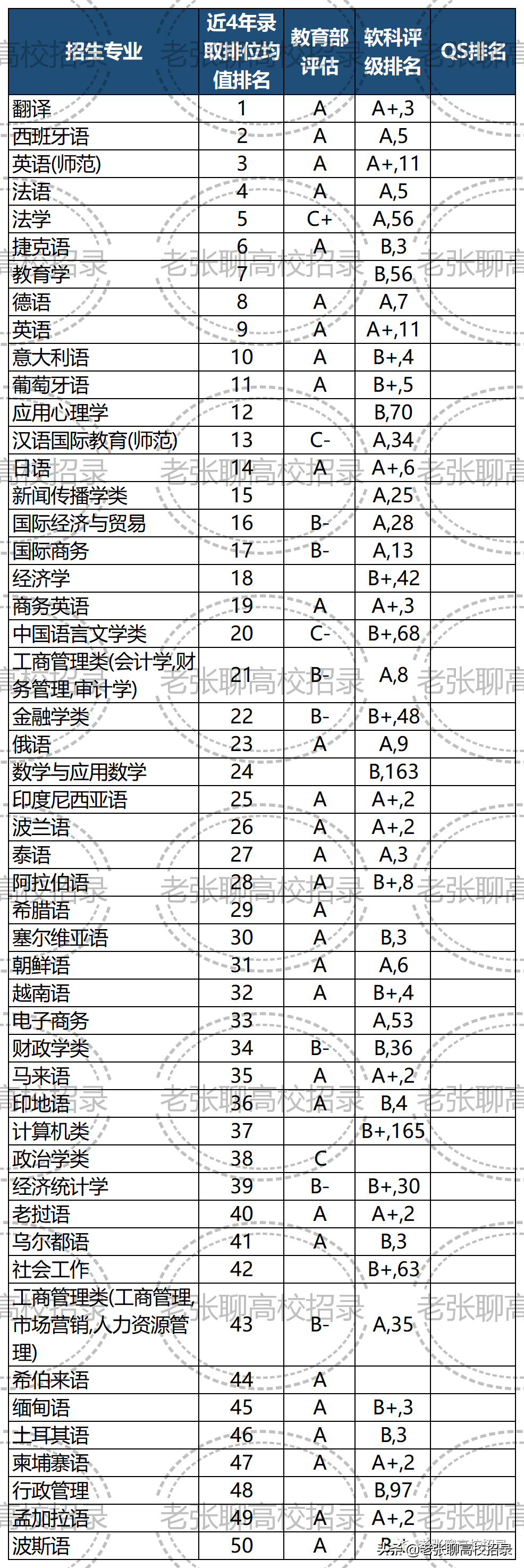 而从近4年录取排位可以看出,报考该校的学生就是冲着其最具优势的外国语言类专业去的,目标非常明确!