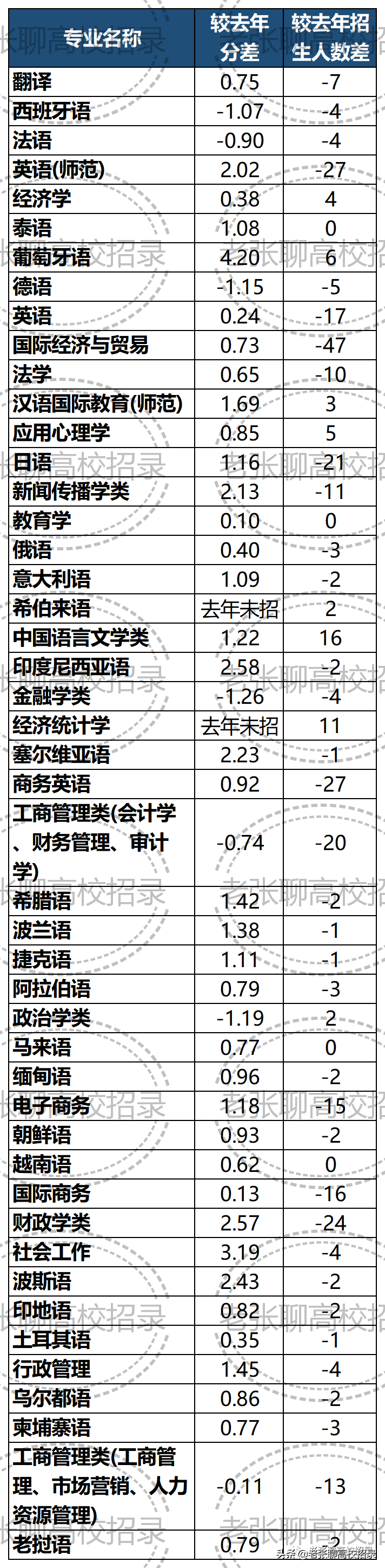 通过“较去年招生人数差”列,可看出某个专业去年的录取人数和今年录取人数的差异,负值表明少招了多少人、正值表明多招了多少人。