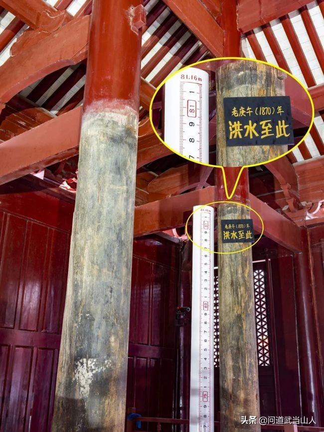 3.3 黄陵庙禹王殿楠木柱清晰记录长江1870年洪水痕迹