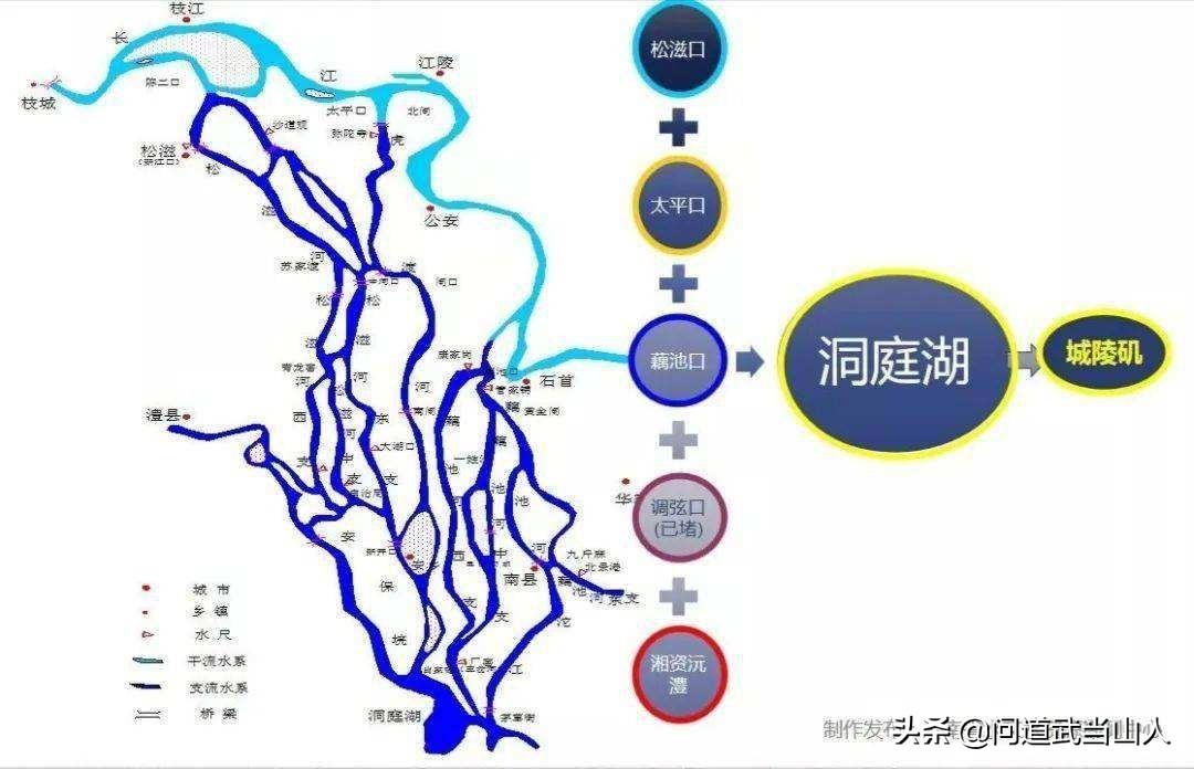 洪峰自三峡席卷而下进入平原,由于洪峰受制于江北1788年至1860年加固完成的荆江大堤,而荆江河曲本身特点导致排水不畅,所以自1788年以后,长江荆江段近半洪峰主要经过“南四口(松滋口(本次洪水决堤后冲刷出来)、藕池口(1852年洪水时被人为炸开,1860年大水决堤后冲刷成为藕池河)、太平口、调弦口)”泄入洞庭湖,四口洪峰累计流量超过50000m³/s,数日之内,上百亿立方洪峰涌入湖区,洞庭湖水满溢。