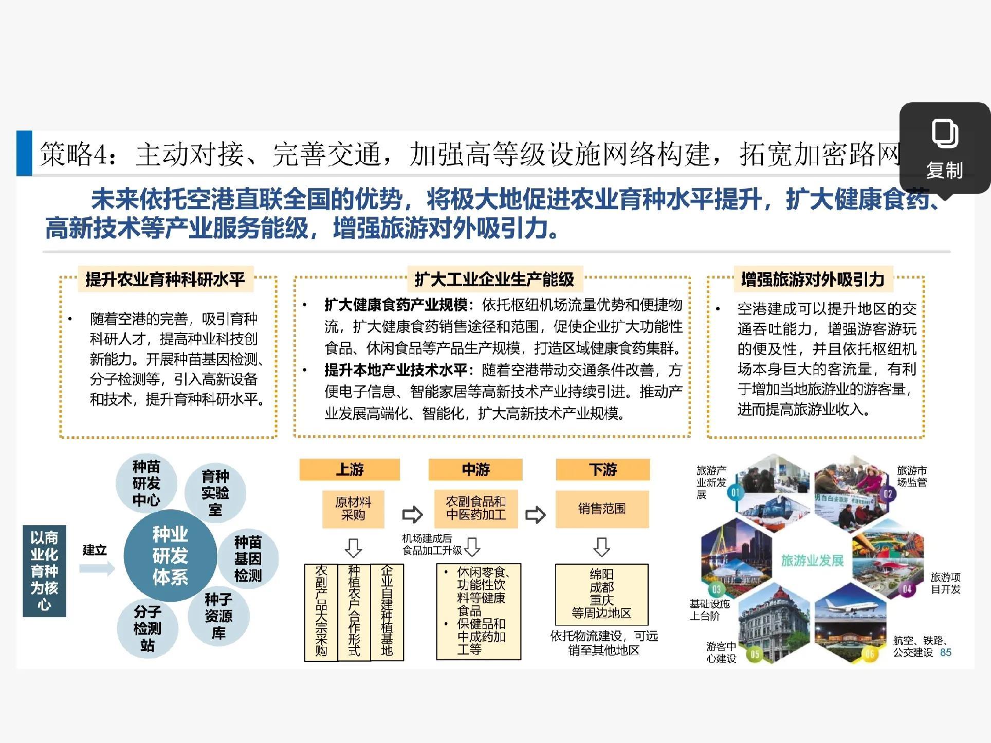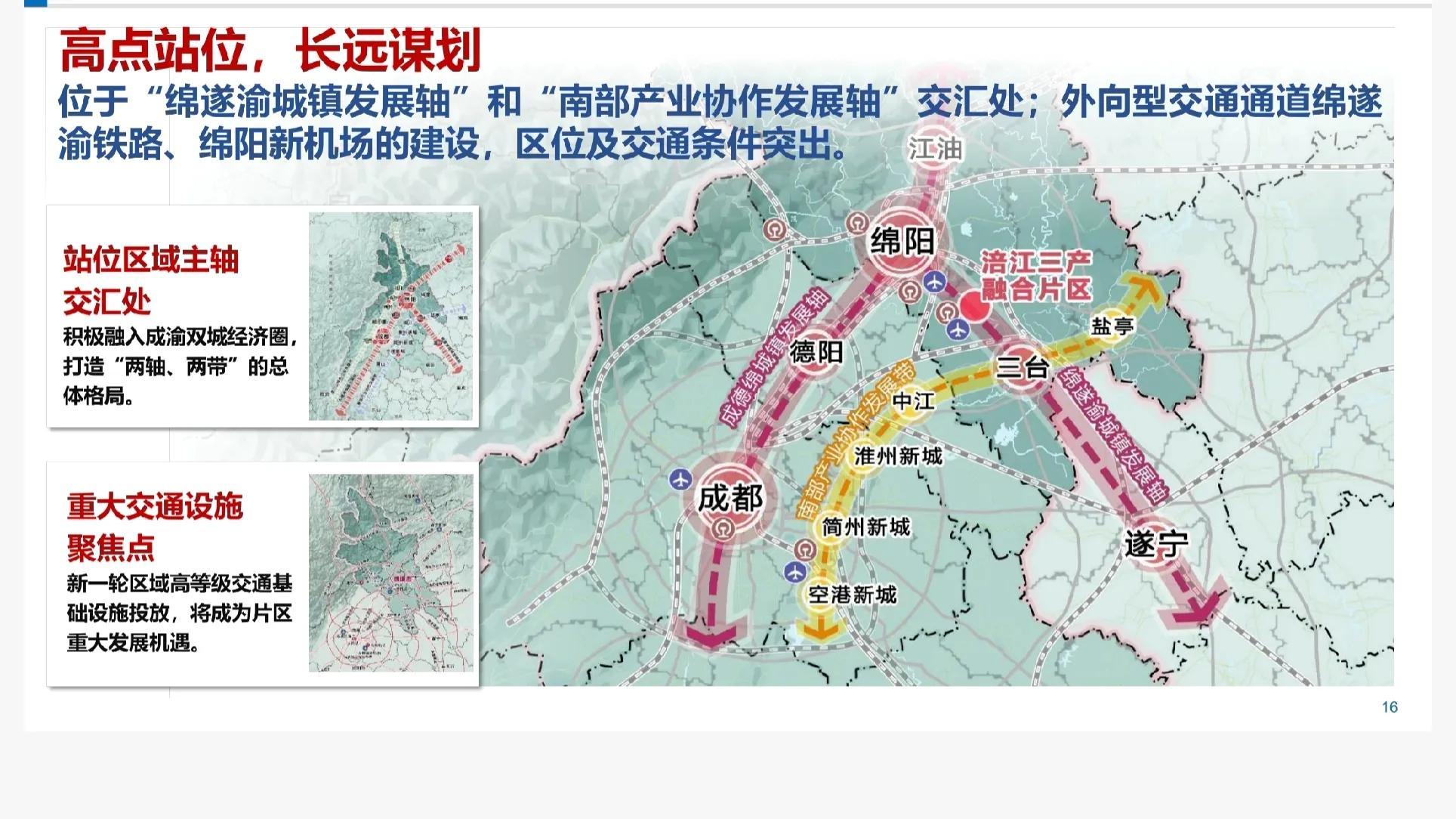 借由涪江三产融合产业带和空港新城。
