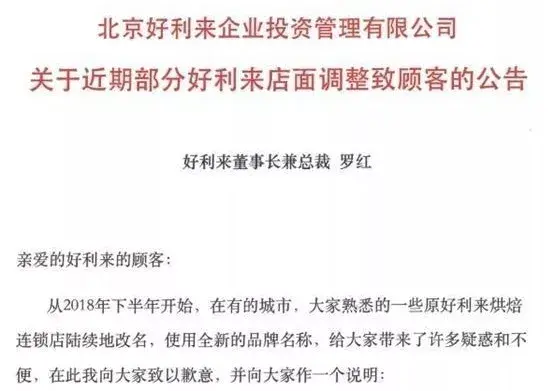 “三好品牌”好利来近年来遭遇最大的“打击”,当属去年8月曝出的“创始人散伙事件”。2019年8月22日,创始人罗红的一份公开声明中称,好利来创始团队于2018年协商并达成“收缩规模,坚持标准”的原则,根据不同市场的实际情况选择性地保留门店,并同时解除了已经实行了19年的联合创始人内部加盟制,各创始人可以自主建立完全独立于好利来的新品牌。
