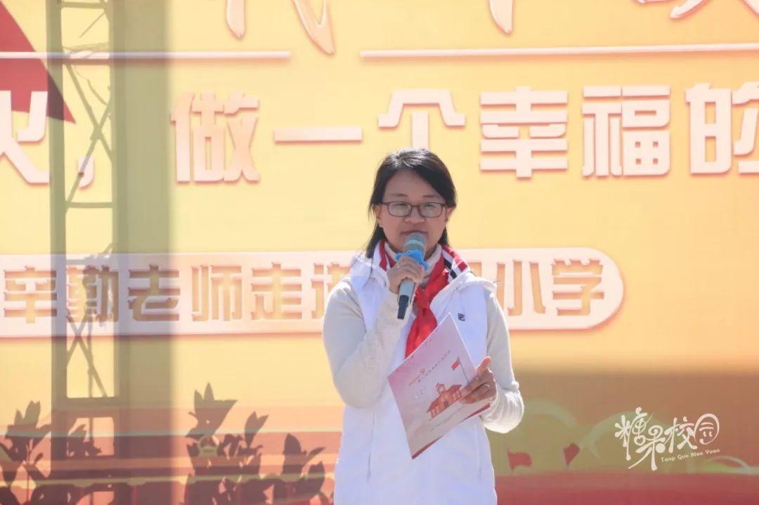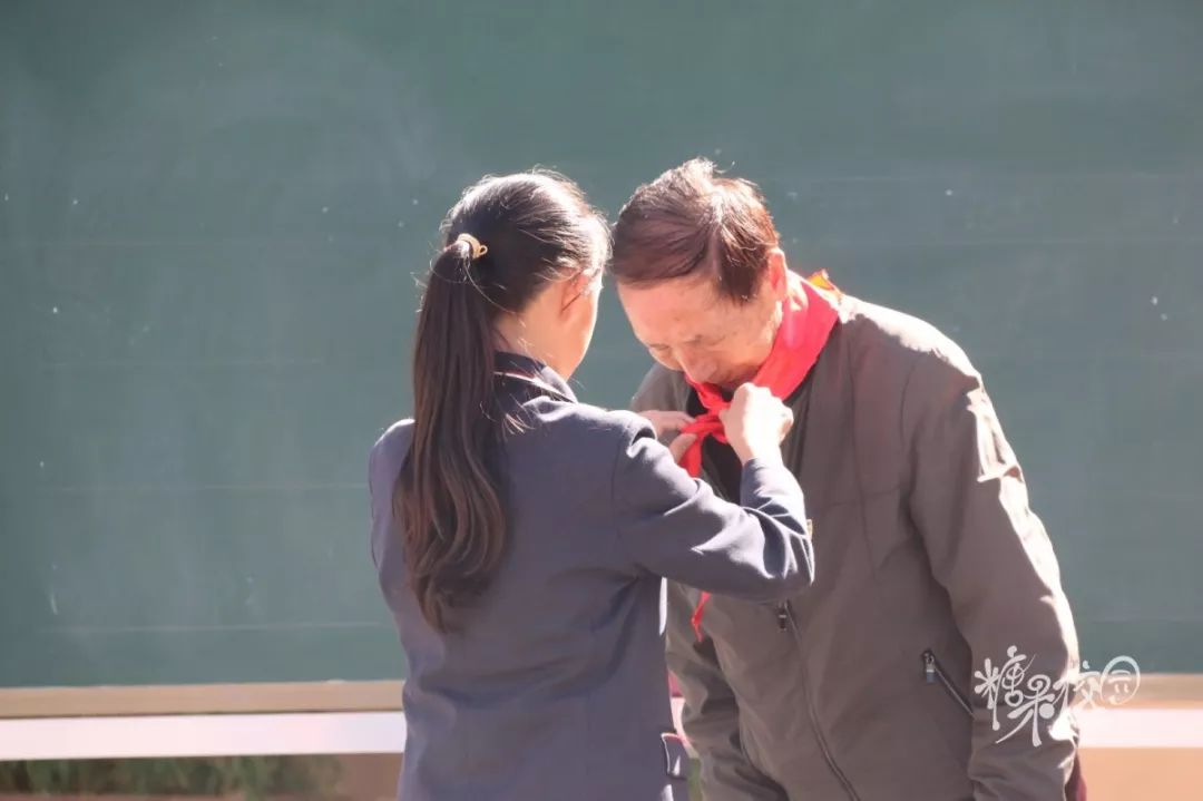 活动伊始,金星小学少先队员给辛勤老师戴上红领巾,热情欢迎辛勤老师的到来。