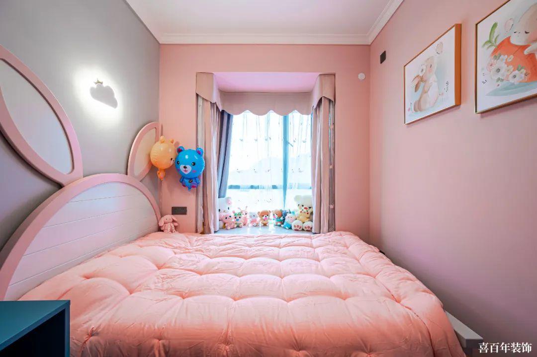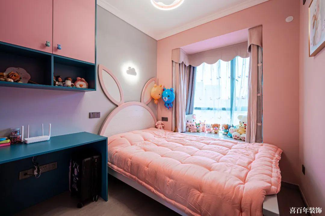 刚上学的小女儿房满满都是宠溺的意味,公主床选了孩子最喜欢的兔子造型,粉色的大面积使用给孩子一个完美的心理过渡,提供满满的少女心。