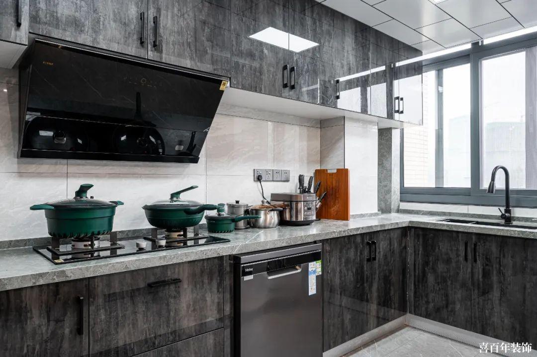 L型的备餐台整体更加舒适耐看,一侧切一侧洗井井有条,一家人的营养保证在这里都能得到落实。