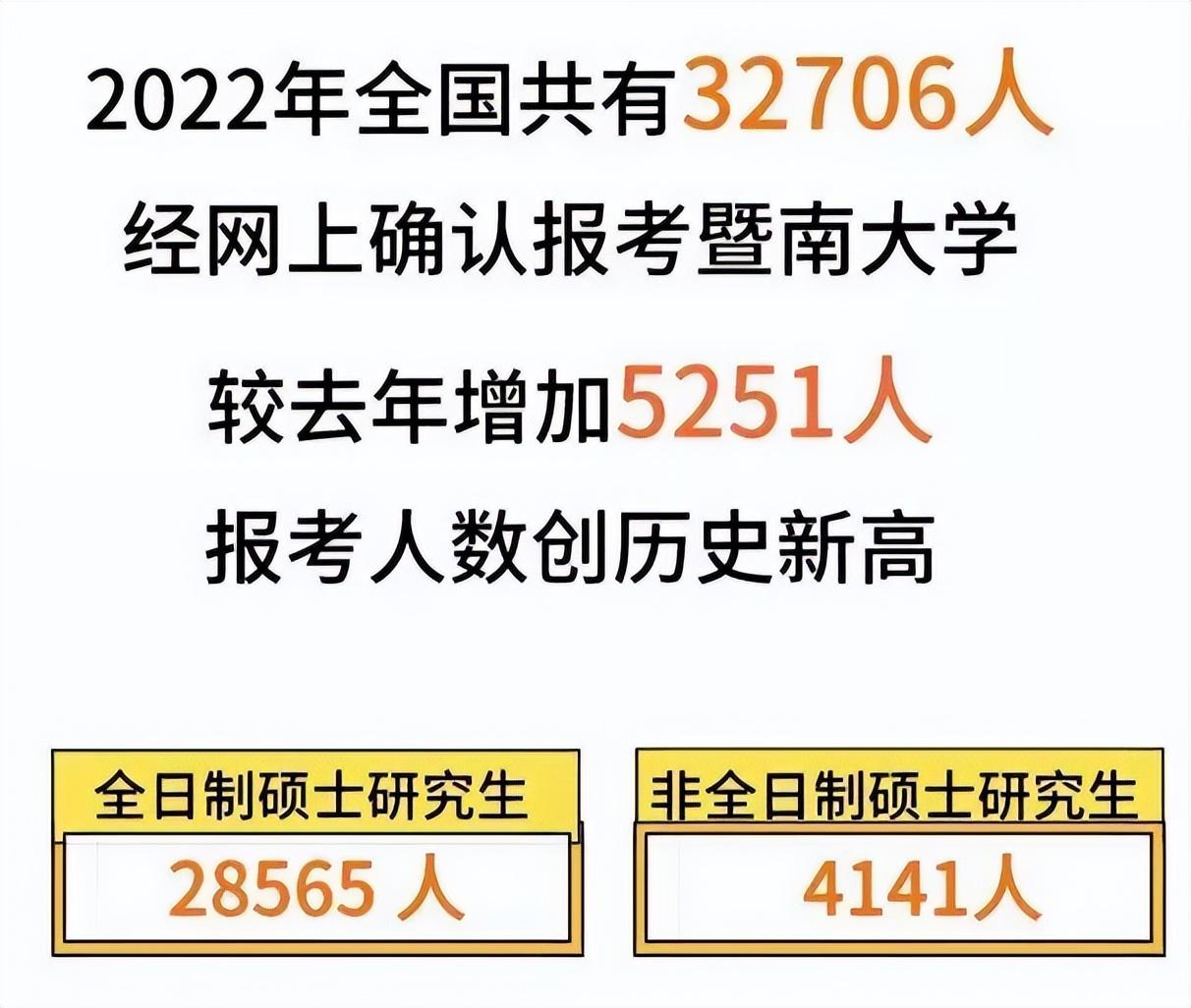 暨南大学2022考研报考人数为32706人,相比2021考研增加5251人,增幅19.1%。