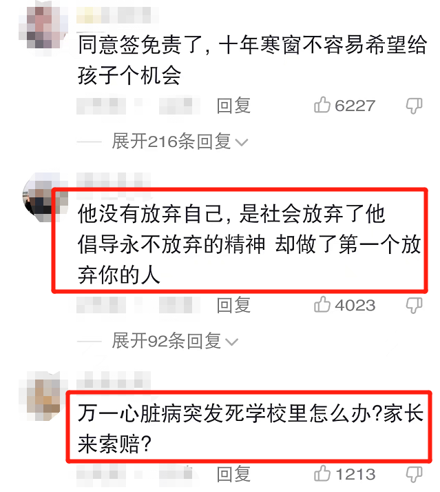 虽然他的老师表示在高三这一年来,他的病情都很平稳,并未出现发病的情况,也希望剩下的院校能给他一个机会,不要让孩子遗憾。