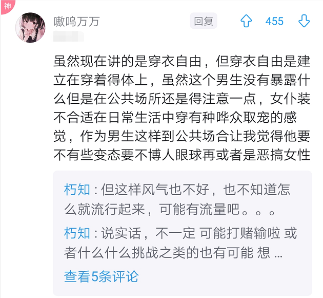 由此有人嘲笑楼主说,本来楼主是想让大家和自己一起谴责这个穿裙子的男生的,没想到大家都让楼主管好自己。