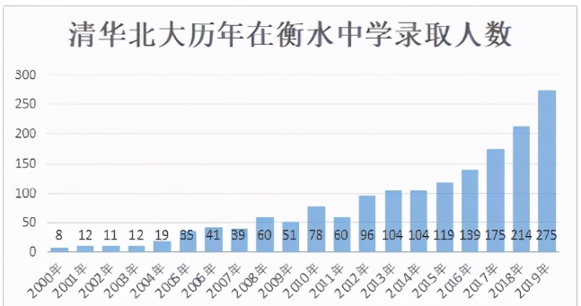 而且每年的录取人数几乎都在上涨,在衡水,老师们的宣言是,一本升学率没有任何意义,我们只看最终被清华北大录取的学生人数。