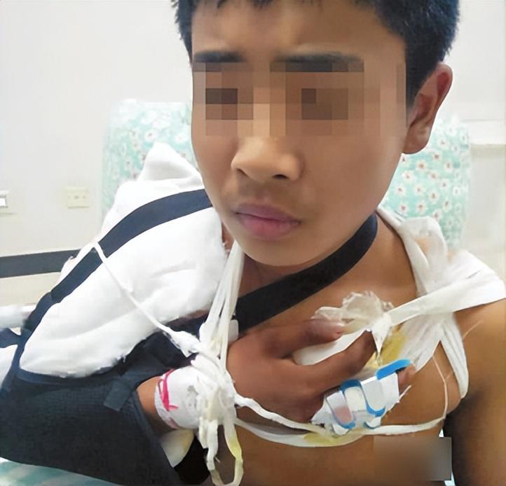 2016年12月,吉林省梨树县四棵树乡某中学付姓同学被7名学生用刀砍伤,右手手指被砍断5根手筋,其中一根手指肉被削掉一半。
