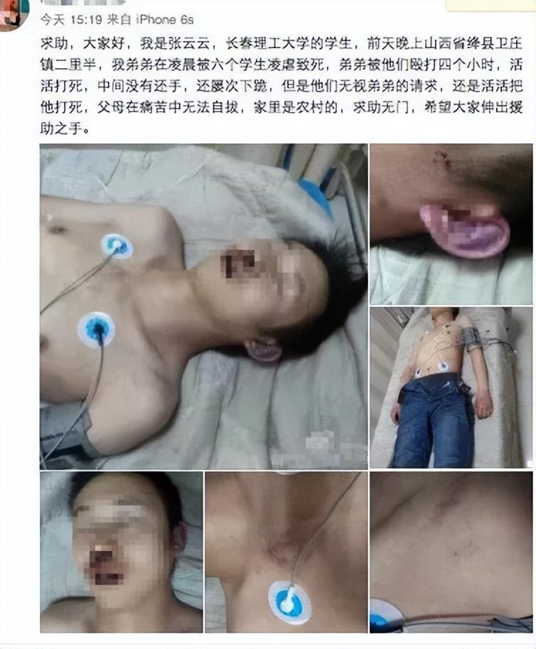 最终,在持续四个小时的凌虐中,张超凡被6名同学活活打死,身上没有一块好肉,80%的骨骼断裂。