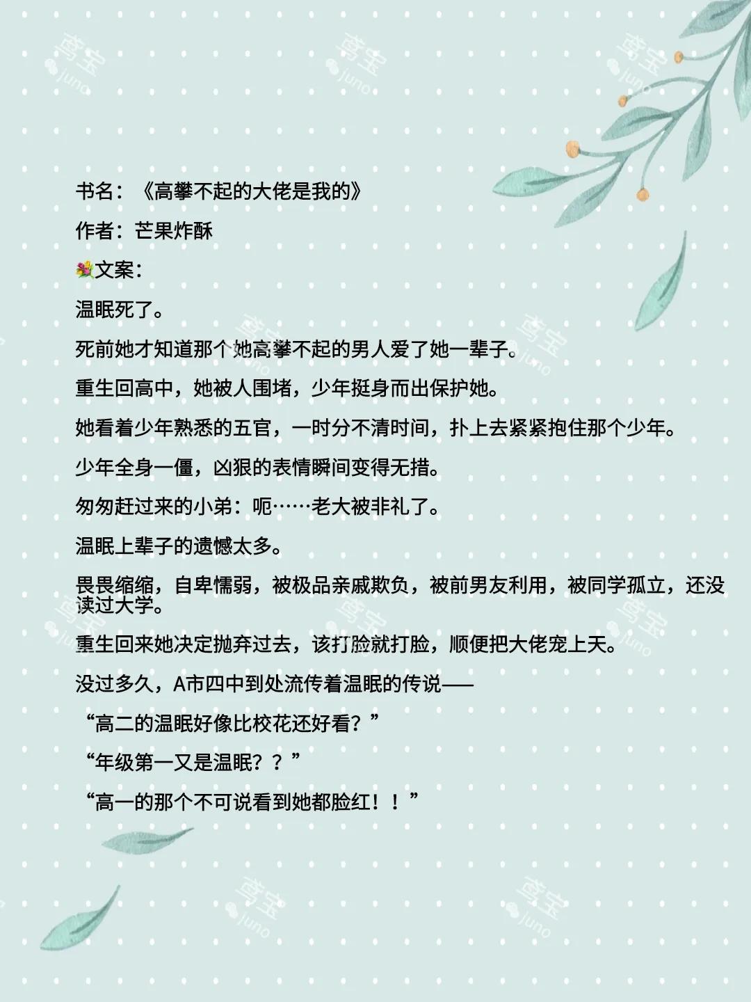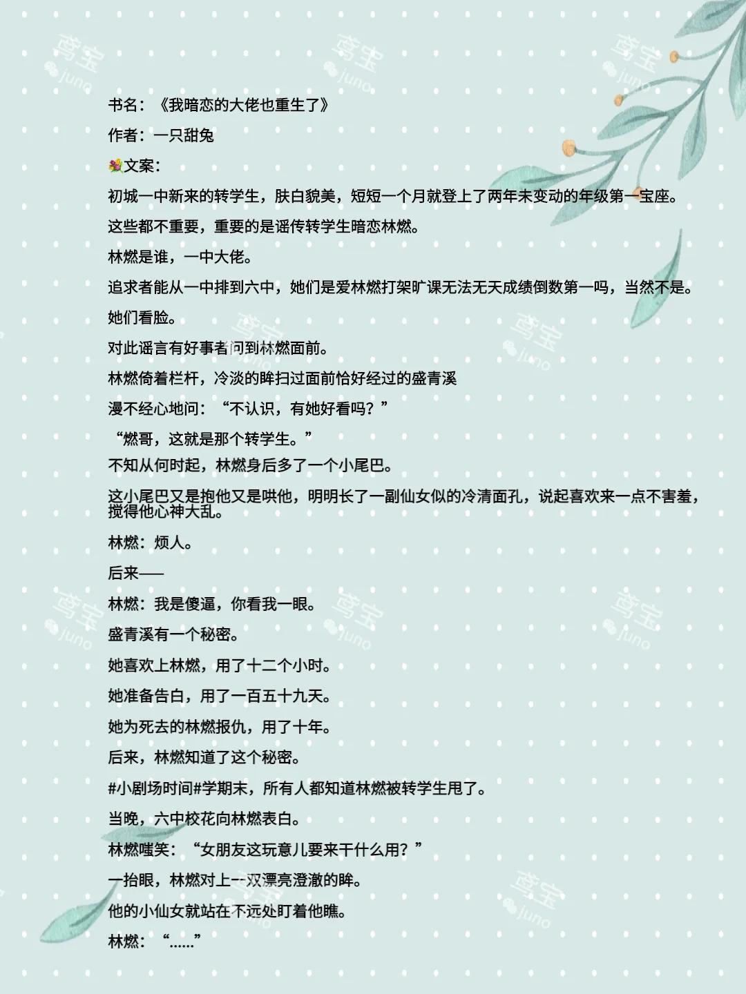1,主校园重生文,好好学习,坚持梦想,这是个正能量文。