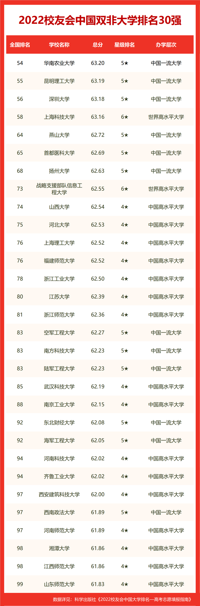 下图给出了2022年校友会中国大学排名(主榜)前100,仅供参考!