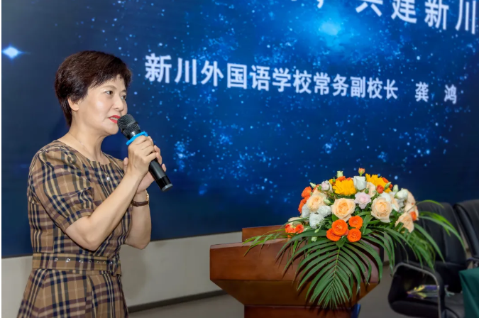 优秀在职教师代表唐小艳、新进教师代表李清明先生、常务副校长龚鸿女士分别发言寄语新教师,希望他们都能顺利完成各项培训任务和考核要求,顺利结业,成为一名合格的、光荣的新川教师。