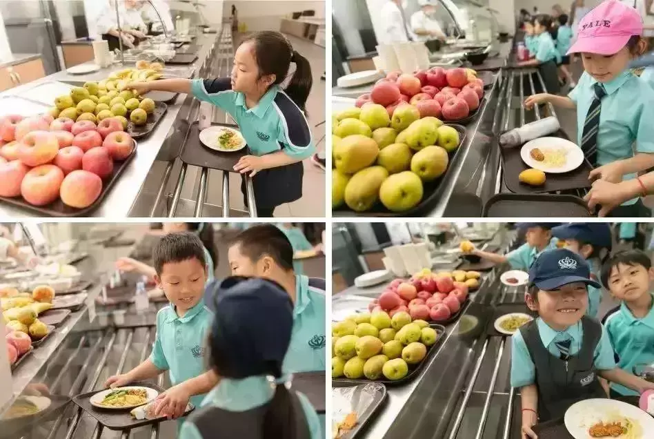 餐厅宽敞、明亮,餐单参考营养学家的意见设计,确保菜品营养丰富,多样化,尽可能满足大多数学生的需求。我们的老师会与学生们一同进餐,在轻松的氛围中培养孩子的口语能力和用餐礼仪。